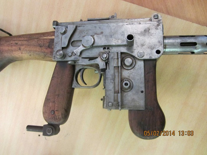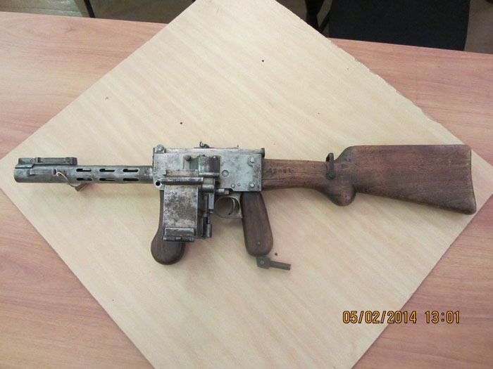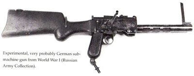 Аппарат калибра 9х19, предположительно немецкий, предположительно период Первой Мировой. По устройству очевидно базируется на ручном пулемете MG 08/18, ибо имеет типично Максимовскую автоматику с подвижным стволом и рычажным запиранием и характерно МГшную компоновку.