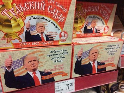 Многие ведущие российских телепередач «часами выражают в эфире надежду на то, что Трамп достанет американо-российские отношения с той нижайшей со времён холодной войны точки, куда они опустились», отмечается в материале. Отдельные российские компании зашли ещё дальше и увековечили нового президента в своей продукции. Так, например, поступила одна из тульских компаний, которая выпустила ограниченную партию рафинада в коробках с портретом Трампа. «Этим продуктом мы хотим показать, что надеемся на то, что наши отношения с Соединёнными Штатами при новом президенте улучшатся. Мы хотим сказать, что надеемся, что они станут слаще», — пояснила в интервью корреспонденту The Washington Post представитель компании.