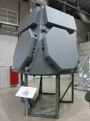 В открытой экспозиции продукции заметно выделялся антенный модуль для морского варианта ЗРПК «Панцирь-СМ» — сделанный в виде усеченной пирамиды с антеннами АФАР и радиолокационного опознавания «свой-чужой». С такой антенной морской «Панцирь-СМ» сможет видеть цели по азимуту 360°.