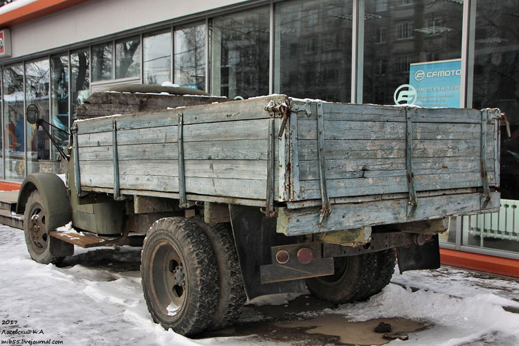 В тот же день, в который я встретил страшненькую «Волгу»-купе, я натолкнулся в Туле ещё на одно примечательное авто. В наши дни встретить ГАЗ-51А, выпуск которого прекратился более 40 лет назад, можно в музее или на ретро-мероприятии, в крайнем случае в далёком колхозе, а тут просто стоит себе на городской улице у магазина.