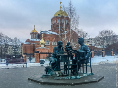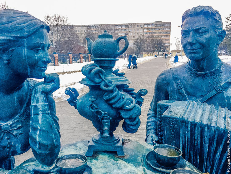 Памятник «Тульское чаепитие» открыли в Туле в сквере недалеко от храма Сергия Радонежского еще 2,5 года назад. Памятник стал довольно популярным, но я, если честно, не особо стремился на него посмотреть, скажу даже больше, я до субботы даже понятия не знал, где он находится 🙂 А тут шел пешком в гости и мой путь как раз попал через тот сквер, поэтому пару фотографий на телефон все же сделал.