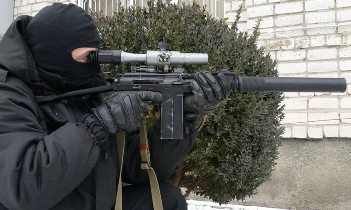 Боец спецназа со специальным малогабаритным автоматом 9А-91
