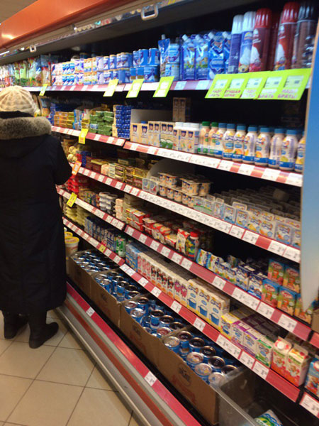 Нет ничего свежего: ни молока, ни сметаны, ни кефира. То, что лежит сейчас в ряде магазинов, датировано ещё февралем. Читатели сообщают, что такая картина наблюдалась утром и после обеда в воскресенье в нескольких «Спарах» в Советском округе.