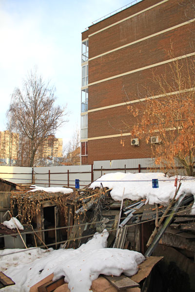 Вероятно, тогдашние городские власти, давая разрешение на строительство жилого дома в престижном районе, могли бы поставить застройщикам условие расселить всю эту «неясную поляну», но этого сделано не было. Фирма забрала себе практически все два гектара. Люди подали в суд, потратив на это деньги, но сделать ничего не смогли. Их отрезали металлическим забором, за которым вырос дом-красавец.