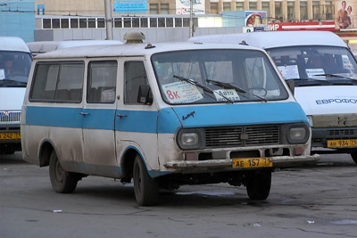 Появилось это скотство году примерно этак в 1996. Сначала несколько маршрутов, типа, 5, 8т. Потом больше стало: 1, 11, 15, 18, 1т. Это то, что сразу приходит на память. Машины РАФ-2203 б/у с Москвы. На опорах возле остановок висели таблички с номерами маршрутов и «шашечками».