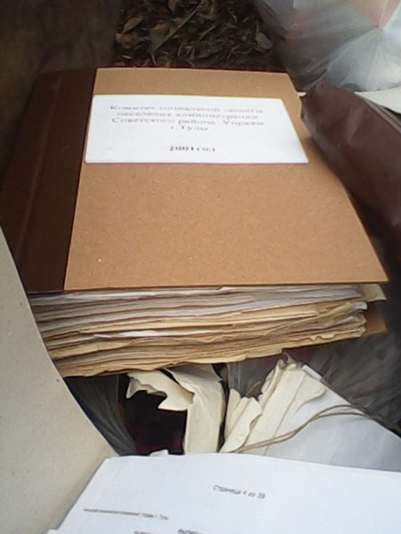 Чушь писать не нужно. Ну ведь не все же ездят на работу на служебном или личном транспорте. Очень многие утром по дороге на работу захватывают с собой мусор в мешке и выбрасывают в мусорный контейнер. Телефон , естественно в сумочке или в кармане. И все давно привыкли, да и власть местная и областная приветствует, что неравнодушные граждане делают снимки безобразий творящихся на улицах, во дворах, магазинах, заведениях общепита, больницах и т.д. и выкладывают их на портале «Открытый регион» или отправляют в СМИ. И вместо того, что бы сказать спасибо этой женщине, увидевшей разбросанные по помойке папки государственного учреждения, вы подняли хай. Даже если эта организация приказала долго жить, то все документы или сдаются в архив или уничтожаются с помощью специальной бумагорезательной машины. Но на помойку в целом виде они никогда не должны попадать.