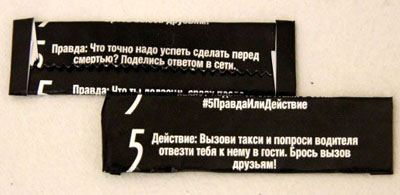 На указанном вкладыше предлагалось выполнить опасное для здоровья задание либо ответить на вопрос смерти: