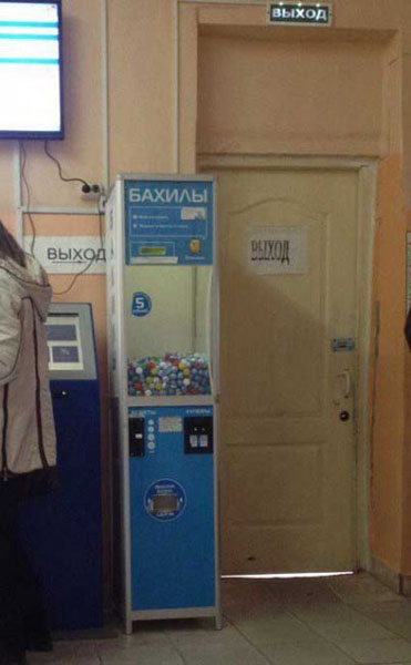 Сразу у входа, стоит аппарат по продаже бахил! Профит стабилен!
