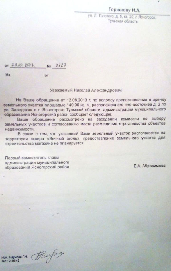 Сейчас при обращении в администрацию представители ООО «ПромИнвест» все время ссылаются на Козлова, так что велика вероятность, что своих идей он не оставил и помогает заинтересованной группе лиц. Сам участок расположен в непосредственной близости от памятника воинской славы с вечным огнем. На данный момент на этом участке находится ухоженная территория с дорожками, аккуратно посаженными кустами, которая в ходе работ ООО «ПромИнвест» уже была загрязнена.