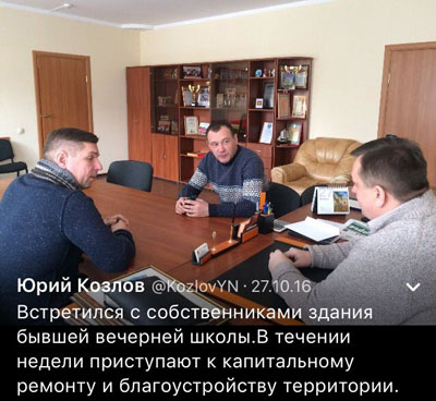 Сейчас ООО «ПромИнвест» провели реконструкцию, не имея земли в собственности, что по факту нарушает закон [оценка автора]. Зная о том, что документов на реконструкцию и благоустройство нет, глава района [Козлов] встретился с подрядчиком и благословил их на нарушение: