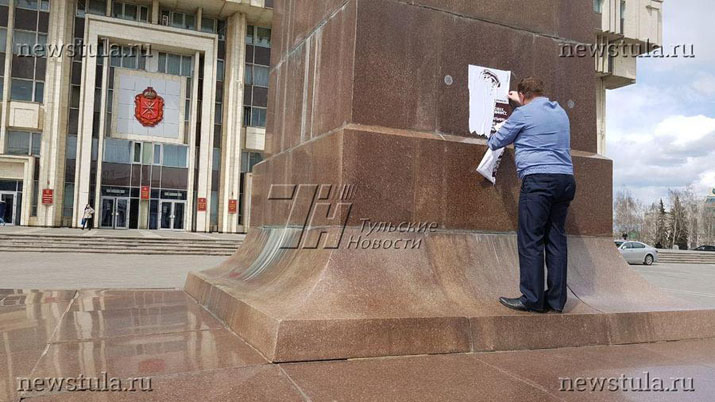 В Туле провокаторы обклеили памятник В.И. Ленина призывами его снести