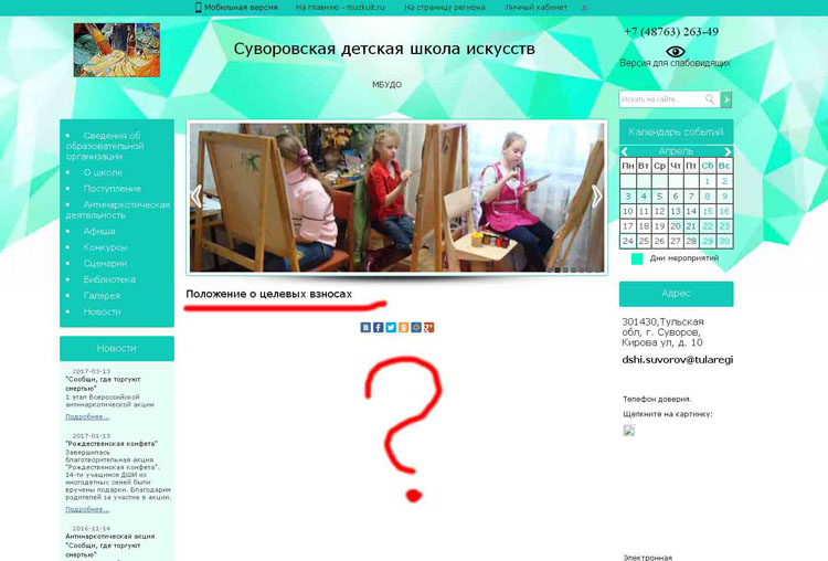 В течении последних месяцев, к нам на сайт [«Деловой Суворов»] постоянно поступали жалобы и вопросы касательно ситуации с добровольно-принудительными взносами в Суворовской детской школе искусств (ДШИ). Начнем собственно с одного из самых первых обращений в нашу электронную редакцию!