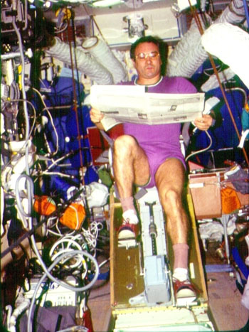 весь второй полет Поляков использовал во время сна «беруши», снижая уровень шума примерно на 30-35 дб (то есть, почти, как в московских квартирах).