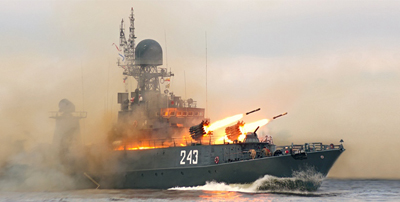 МПК-227 проекта 1331М ведет огонь из установки РБУ-6000 комплекса РПК-8