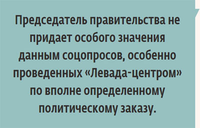 Так вот, в той реальности, где живут большинство россиян и «Левада-центр», не нужно никакого заказа, чтобы понять, что вопрос об отставке премьера весьма актуален и интересует многих граждан не меньше, чем рейтинг Путина или отношение к президенту США. А значит, социологи просто обязаны время от времени выяснять мнение респондентов по этой проблеме.