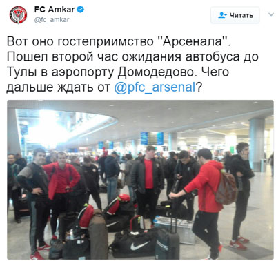 Исполнительный директор «Амкара» Денис Маслов выразил возмущение организацией работы со стороны тульского «Арсенала». Пермская команда прилетела в Москву, откуда перебирается в Тулу, где завтра состоится матч 29-го тура чемпионата страны.