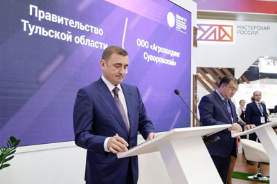 Как сообщает пресс-служба правительства региона, свои подписи в документе о сотрудничестве при реализации инвестиционного проекта на территории Тульской области между правительством Тульской области и ООО «Агрохолдинг «Суворовский» подписали губернатор Алексей Дюмин и Бахтиер Фазылов.