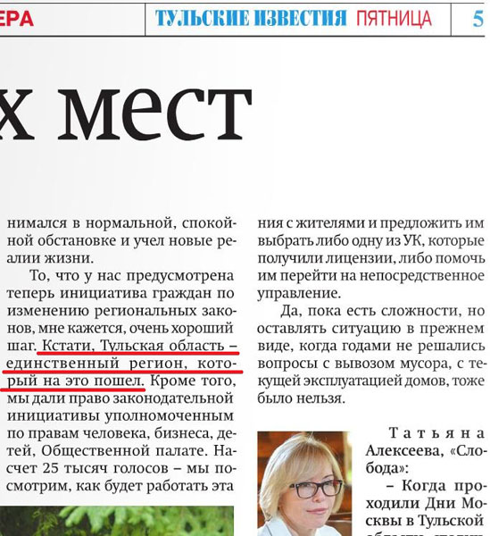 Некоторые СМИ даже в заголовки вынесли: «Владимир Груздев: Тульская область – единственный регион, который дал законодательную инициативу своим жителям».