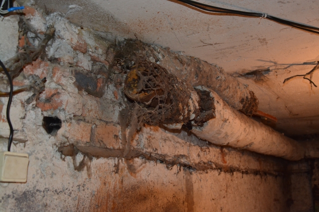 Идём, смотрим. В стене красуется продолговатая пробоина, заделанная едва успевшим высохнуть цементным раствором. Оказывается, прорвало канализационный стояк в одной из квартир, соседей двумя этажами ниже обдало фекалиями, а собственник «нехорошей квартиры», как выяснилось, вовсе и не при делах ни разу — на момент санитарной катастрофы он находился в длительной командировке. Пришлось ломать стену, чтобы добраться до прогнившего чугуна, который не меняли здесь с момента постройки дома.