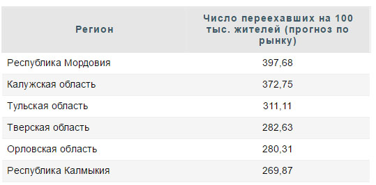 Если добавить коэффициент, отражающий численность населения в регионах России (ведь 1000 человек, приехавших из Санкт-Петербурга, и 1000 человек, приехавших из Петропавловска-Камчатского – это не одно и то же), таблица лидеров изменится. Окажется, что в пересчете на население чаще всего переезжают жители Мордовии. На втором и третьем месте – калужане и туляки.