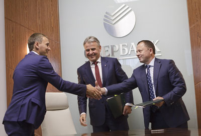 На фото «Тульских известий»: зампред областного правительства Д.Тихонов, управляющий Тульским отделением Сбербанка А.Шестаков и гендиректор ТД «Медведь» М.Щербаков