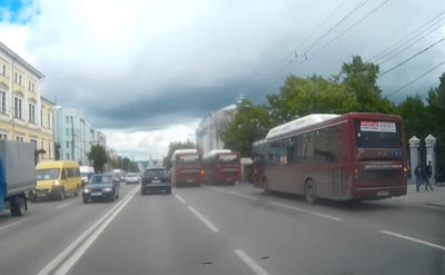 Ну и конечно вершину хамства возглавили водители на перекрестке Льва Толстого и проспекта Ленина, не дожидаясь зеленого сигнала светофора, несколько машин покидают перекресток на красный свет! Ладно, полбеды… НО! Два автобуса делают то же самое, причем, практически синхронно. (Автобус в правой полосе двигался по маршруту №28, гос. номер автобуса Р075МУ 71, он на остановке стоит в самом начале, и второй автобус двигался по маршруту №11,его гос. номер Р365СК 71, он остановился в конце остановки).