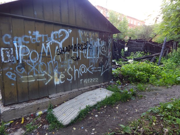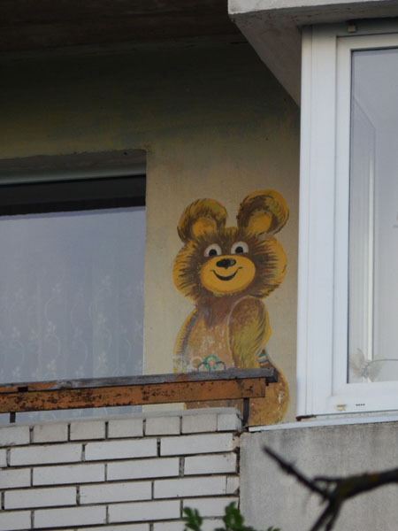 Из того, что навевает воспоминания о детстве остались только надпись на сарае во дворе (надо сходить сфоткать, а то и её не станет) да олимпийский мишка на балконе общаги на улице Глинки.