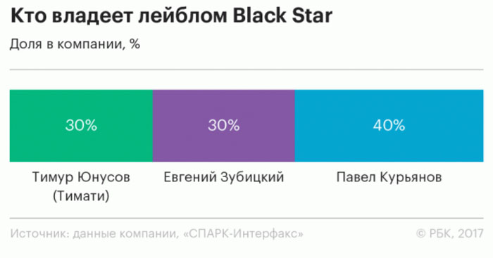 Наладить бизнес-процессы Пашу помог консультант Илья Кусакин (он и сегодня проводит тренинги для сотрудников Black Star). Вместе они сокращали расходы и выстраивали систему продаж, за которую лейбл сегодня хвалят даже конкуренты. В состав акционеров удалось привлечь еще одного знакомого Пашу и Тимати из мира большого бизнеса — Евгения Зубицкого, совладельца Промышленно-металлургического холдинга (№190 в российском рейтинге Forbes, состояние — $500 млн; вопросы журнала РБК представитель Зубицкого оставил без комментариев).