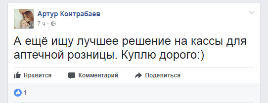 А ещё ищу лучшее решение на кассы для аптечной розницы. Куплю дорого», — пишет он в фейсбуке.