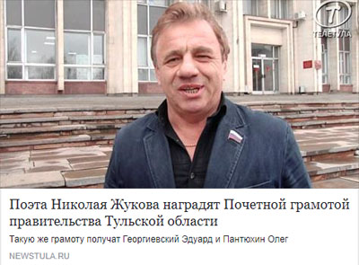 Ну что, грамотеи, ценители прекрасного, гурманы слова? Мы тут с вами суетимся, зубочистки ломаем, а «придворного поэта» Колю Жукова власти прилюдно в носик чмокают, выражают свою благодарность «за многолетнюю добросовестную работу и достигнутые трудовые успехи». И плевать они хотели на наши «томления под облаками» по поводу его вирш бездарных и мерзких… «Какое время на дворе, таков мессия»…