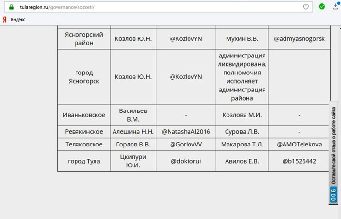 На сайте областного кабмина размещена ссылка на «левый» аккаунт сити-менеджера Тулы