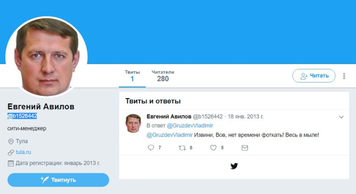 Тульское правительство впаривает твиттерянам фейкового Авилова