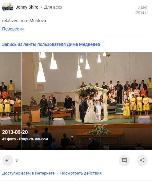А 20 сентября 2013 года он опубликовал несколько фотографий, вероятно, с церемонии бракосочетания. Подписал условный американец фотоальбом необычно: «родственники с Молдовы».