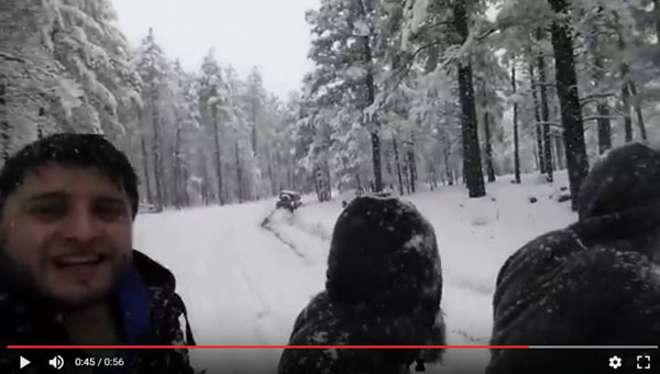 Также опубликована видеозапись: Джонни катается с друзьями на внедорожнике по заснеженному лесу. И общаются между собой парни… на русском языке.