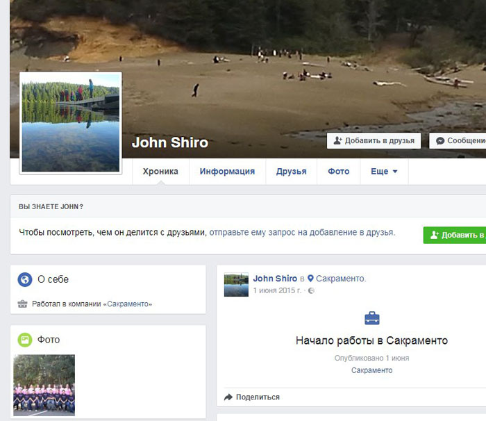 По электронному адресу почтового ящика, с помощью нескольких интернет-порталов, нам удалось выяснить: а) Джонни Широ есть в Facebook, но аватарка отличается от той, которая в «Гугл Плюсе»;