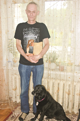 После этого у Андрея Концова появился лабрадор, который и по сей день сопровождает его. В реабилитационном центре он также узнал, что те, кто погрузился в темноту, могут овладеть и работой на компьютере по специальной программе для слепых. Пришлось повозиться, конечно, но и с этой задачей мужчина справился. А затем стал осваивать профессию резчика по дереву.