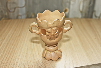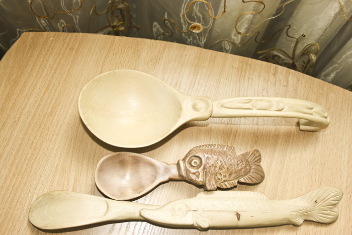 Как будет выглядеть следующая работа, Андрей Викторович придумывает сам. Представляет образ будущего изделия в голове, после чего приступает к реализации идеи. В изготовлении использует только липу, которая отличается пластичностью. Эльвира Васильевна научилась обрабатывать изделия морилкой и покрывать лаком.