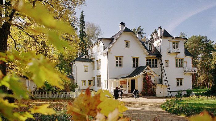 Теперь отправляйтесь в усадьбу — до нее не больше пары километров. Все здания строились на века: за 125 лет их ни разу не реставрировали. Прототипом Большого дома — 24 комнаты — стала усадьба родителей Поленова в Олонецком крае. Не только дом, но и многие детали интерьера и мебели сделаны по дизайну Василия Дмитриевича. Посуду, включая знаменитые тарелки «12 месяцев», расписывала и сестра художника, Елена.