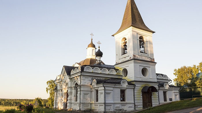 Хозяин сам спроектировал все здания на территории имения, а также церковь Святой Троицы в близлежащем селе Бехово. Пожалуй, именно с Бехово и стоит начать. За церковью — кладбище, где похоронены Василий Дмитриевич и члены его семьи. Отсюда открывается великолепный вид на Оку.