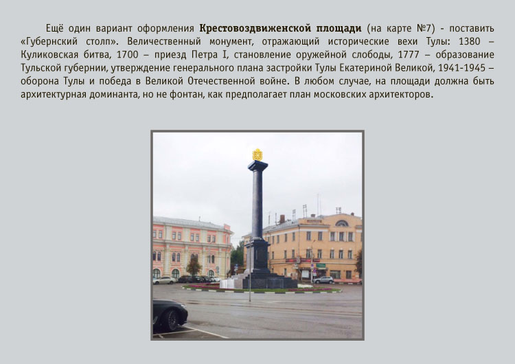 Хочу пояснить: свой проект Игорь Алексеевич сделал не как противопоставление работе московских архитекторов!!! Вовсе нет! Это — его видение исторического района Тулы, его отношение к тому, в каком ключе этот район можно преобразовать.