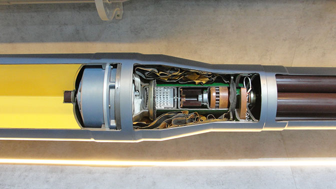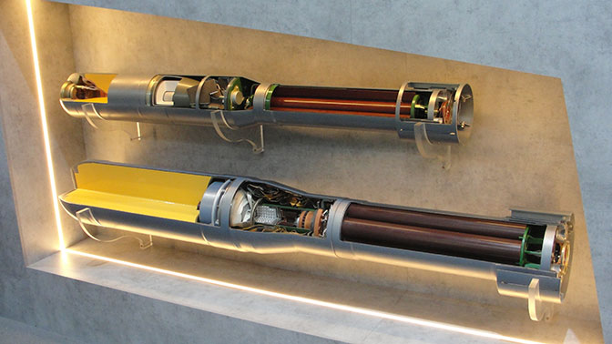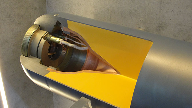 — Это уникальное изделие, предназначенное для борьбы с различными подводными целями. Комплекс устанавливается на больших кораблях, например фрегат «Адмирал Эссен», и др., и предназначен для защиты корабля от подводных лодок на ближних рубежах. Отличительной особенностью комплекса с ракетой 90Р от глубинных бомб является то, что это управляемое на подводном участке траектории, высокоточное вооружение. Ракетный твердотопливный двигатель доставляет боевой модуль в район цели и дальше, после приводнения, модуль отделяется и за счет гравитации и инерции движения бесшумно «планирует» к цели. Наведение осуществляется с помощью гидроакустической системы. Она осуществляет поиск подводной цели и наведение на нее управляемого боевого модуля. Такой подход в десятки раз увеличивает вероятность поражения подводной лодки противника по сравнению глубинными бомбами. РПК-8 был разработан нами в 80-е годы и стоял на вооружении нашего ВМФ. После этого был продолжительный перерыв, и мы по заказу ВМФ восстановили производство, кооперацию изготовления этого сложного изделия. В прошлом году мы сдали первую серийную партию, в этом году изготавливается следующий заказ для нашего флота.