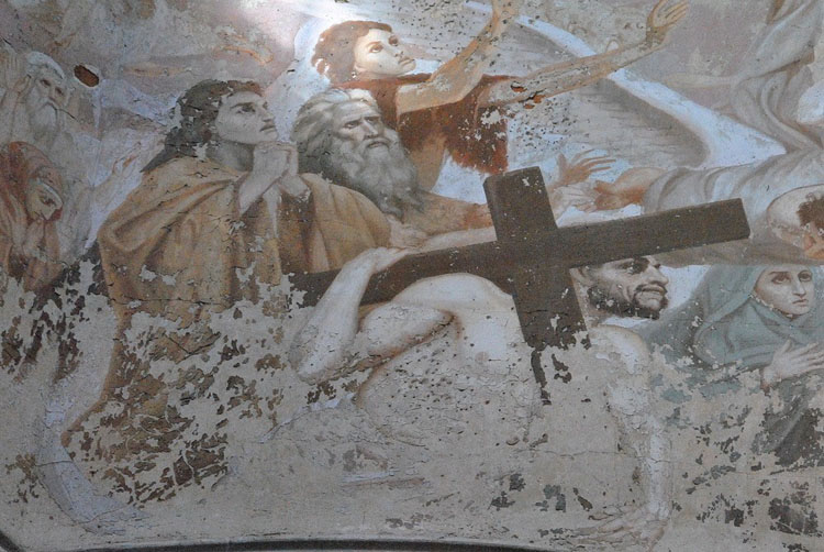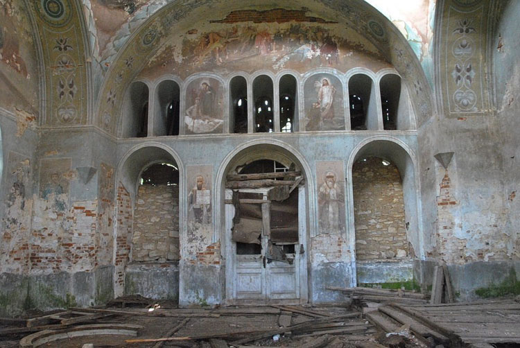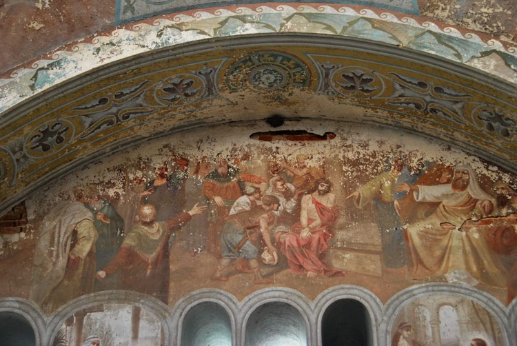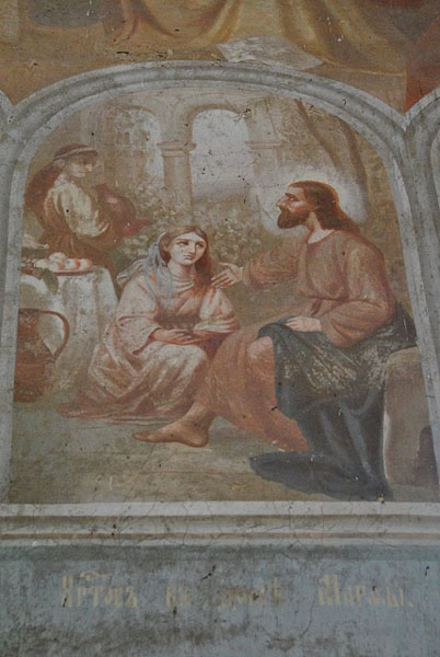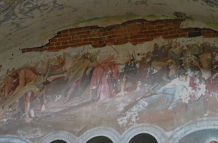 Колокольня сломана, сегодня заброшена. Интересна тем, что сохранилось большое количество фресок. Предлагаю посмотреть.