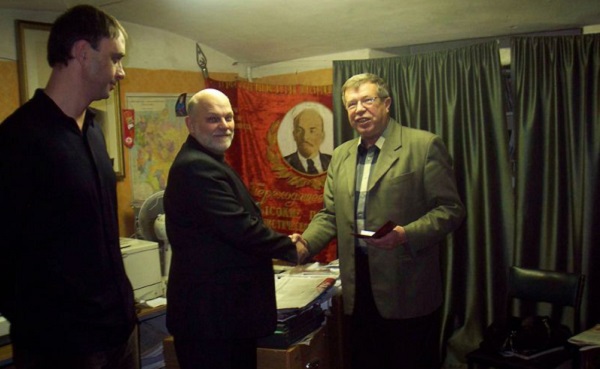 И если кто-то думает, что в богоспасаемой РФ только деятели искусства да мракобесы-попЭ такие неразборчивые — вот вам ещё фотка, тут уже самого г-на Пуделя награждают. Коммунисты (типа, какбе «коммунисты») награждают. Орденом «Герой Трудовой России», сцуконах. Владимир Ильич глядит с портрета на это действо и тихо выпадает в осадок.