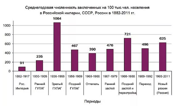 Скажите о неимоверном количестве заключенных, которые отбывали наказание при сталинском режиме? Не соглашусь и здесь, призвав на помощь статистику, которая по сути своей лишена эмоций, но не лишена объективности. Есть такой показатель, в статистике, называется «Среднегодовая численность заключенных на 100 тысяч человек населения». С 1930 по 1935 годы, начальный период правления Сталина, данный коэффициент составлял 235. Существенный рост наблюдался с 1936 по 1955 год. В данный период коэффициент составил 1064, но не стоит забывать о существенном росте уголовных и военных преступлений в период Великой Отечественной войны. Это много? Разумеется. Но в период правления того же Горбачева, который сегодня призывает нас отказаться от сталинизма, коэффициент составлял 721. А в период с 1993 по 2011 годы коэффициент составлял 625. Это очень много для мирного времени, но мы не спешим называть «душегубами» Горбачева и Ельцина, хотя стоит над этим задуматься, а воспринимаем это как само собою разумеющееся. Ельцину даже музей построили, Ельцин-центр, стремимся передать его опыт потомкам.