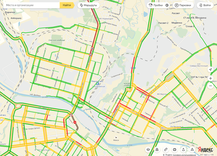 Ничего особенного на Яндекс.Пробках не наблюдается