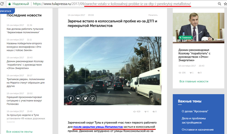 Кстати, этот горе-журналист и с географией не совсем дружит. Ул. Комсомольская идёт параллельно ул. Октябрьской. А пробка начинается от несколько другого, пусть и созвучного, географического объекта. Но кому это важно… Главное, «сенсация» высосана, только, боюсь, даже не из пальца.