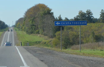 Много интересного можно встретить на федеральной дороге М-2. Например, дорожные указатели, типа: «Скуратовский» — наверное, указывает на давно не существующий совхоз «Скуратовский», вместо старинного села Большое Скуратово.