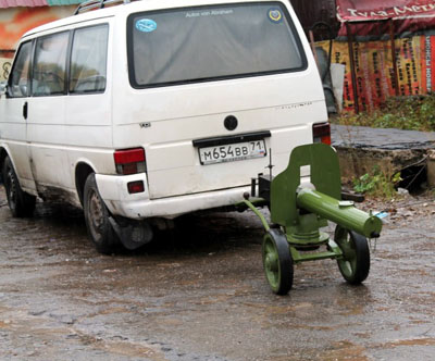 То ли реквизит у парней остался после сьёмок фильма «Брат-2», то ли всерьёз приготовились к столетию Октябрьской революции.