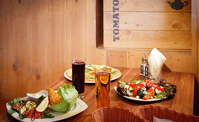 Кушали недавно в Москве в Му-Му,недалеко от кремля. На троих счет 1500 рублей. В Томато на зеленстрое за такую же еду 2500 рублей.