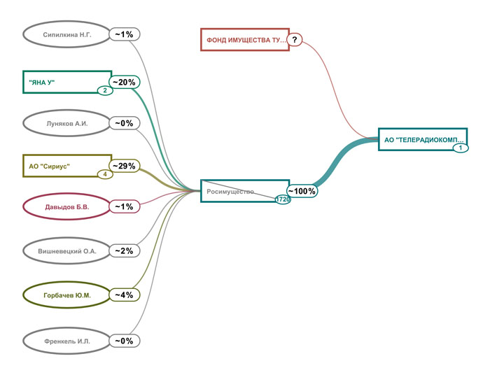 Если без подробностей, то схема владения «Телерадиокомпанией РТР (Региональное Телевидение и Радио)» выглядит так